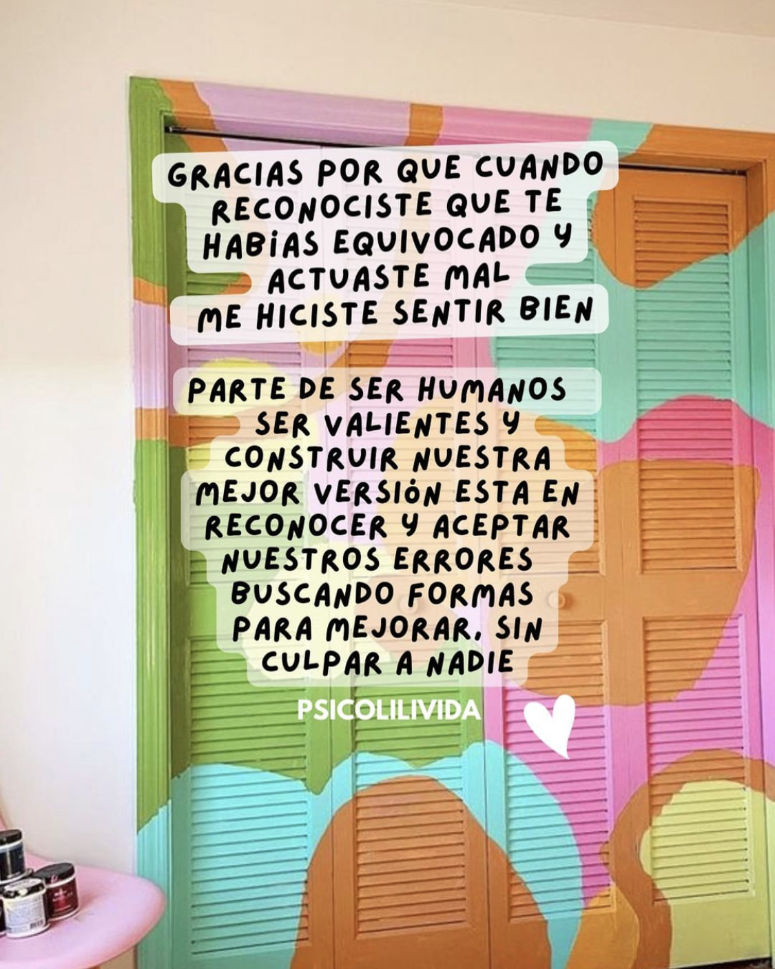 Gracias por que cuando me pediste disculpas y me dijste que habías actuado mal, que te habías dejado llevar de lo que sentías me hiciste sentir bien